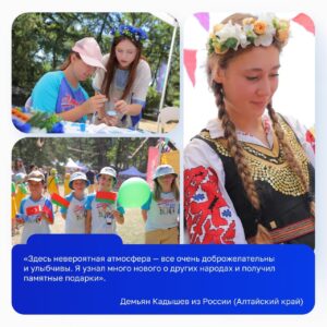 В течение дня в парке комплекса «Горный» был разбит масштабный международный город, где каждая страна представляла свои традиции, национальные костюмы, музыку и кухню. Для многих участников фестиваль стал настоящим «путешествием» по миру: здесь можно было отправиться в Африку, Европу, Северную Америку или в страны Востока.