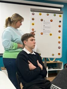 💬Мельникова Е. В., психолог (куратор): «Сегодня ребята поняли, что злиться, обижаться, чувствовать себя неуверенно — совершенно нормально. И защищать себя тоже нормально и даже нужно! Обучающиеся учились управлять своими реакциями, так чтобы не дать агрессору управлять ими вместо самого себя!»