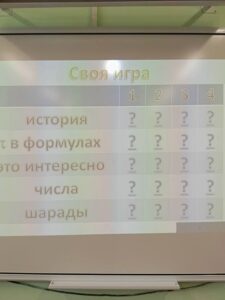 Учитель математики, Израилева Е.Е.: «Игра направлена на углубление знаний о числе «Пи», содержит историческую справку, сведения о применении числа «Пи» в различных областях, ребусы, задания на логику. Обучающимся были предложены способы запоминания знаков числа «Пи», такие как стихотворения, поговорка. Также ребята узнали о некоторых традициях празднования Дня числа «Пи».»